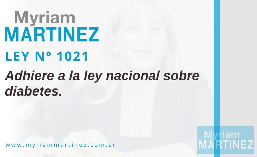 LEY Nº 1021 – Adhiere a la ley nacional sobre diabetes.